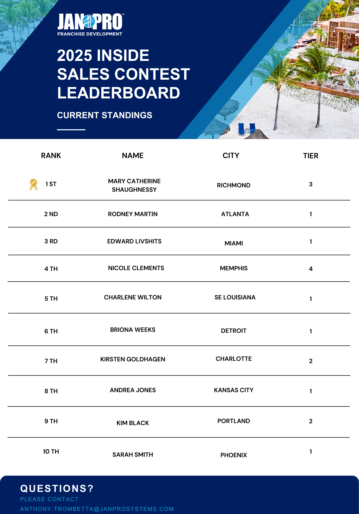 Outside salespeople will be measured on the highest annual revenue for starts and increases for the full 2025 calendar year.